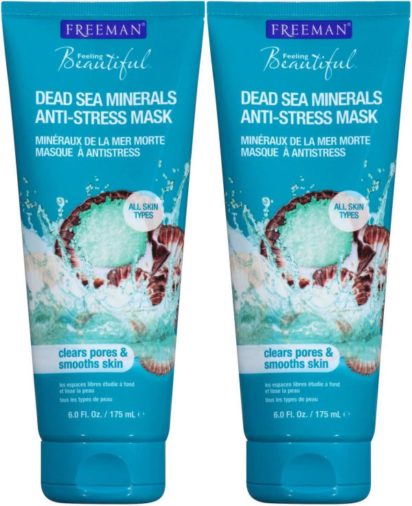 Freeman Anti-Stress Clay Facial Mask with Dead Sea Minerals, Balancing and Clearing Beauty Face Mask, 6 oz, 2 Pack